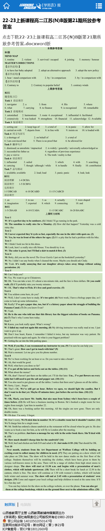 我们会每隔2~3周检查一次江苏高二(N)的答案,进行整理,并合并成一个易于打印的文件。你现在就可以下载它们。